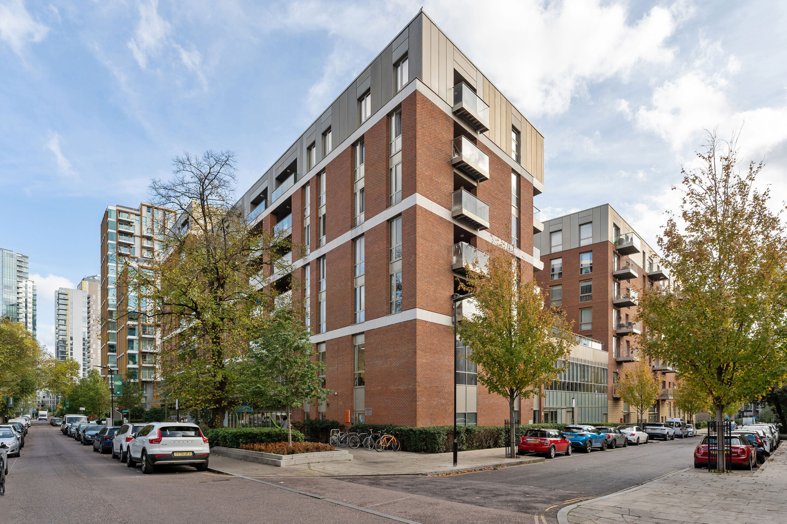 Shared roof access terraces offer panoramic views of London to tenants.